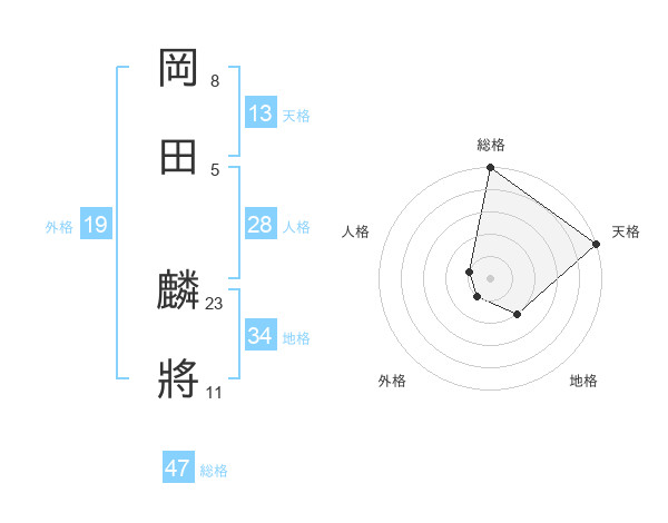 岡田 麟將さんの総格は47画の5点!