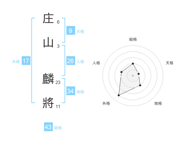 庄山 麟將さんの外格は17画の4点!