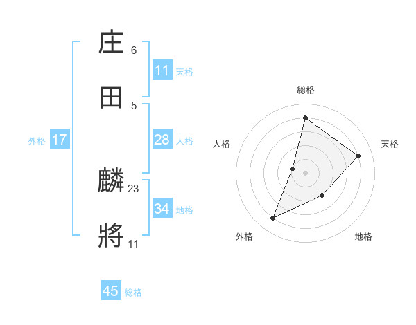 庄田 麟將さんを姓名の画数から五運を鑑定