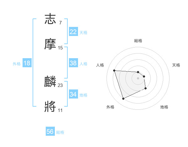 志摩 麟將さんを姓名の画数から五運を鑑定