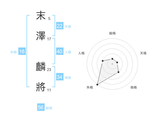 末澤 麟將さんの天格は22画の1点!