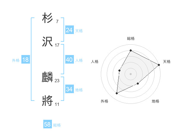 杉沢 麟將さんの総格は58画の4点!