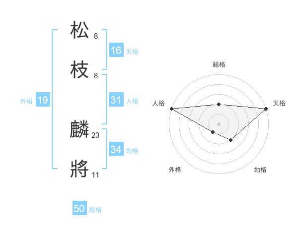 松枝 麟將さんの総格は50画の2点!