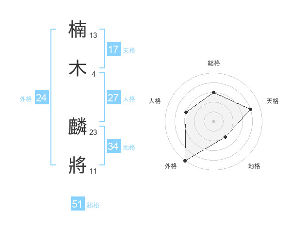 楠木 麟將さんの総格は51画の3点!