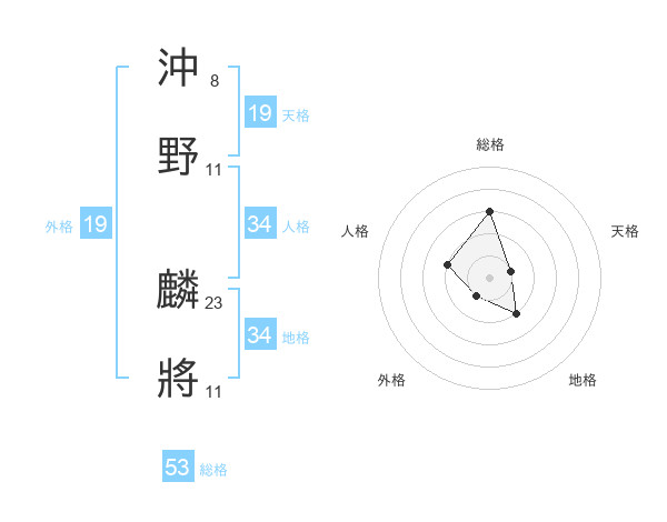 沖野 麟將さんの総格は53画の3点!