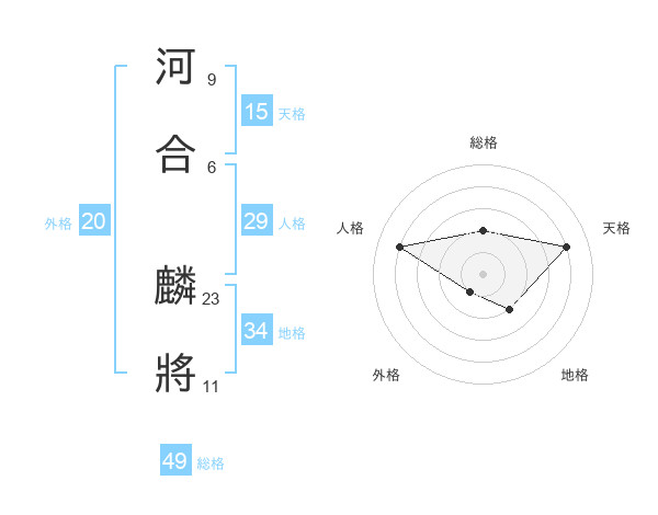河合 麟將さんの総格は49画の2点!