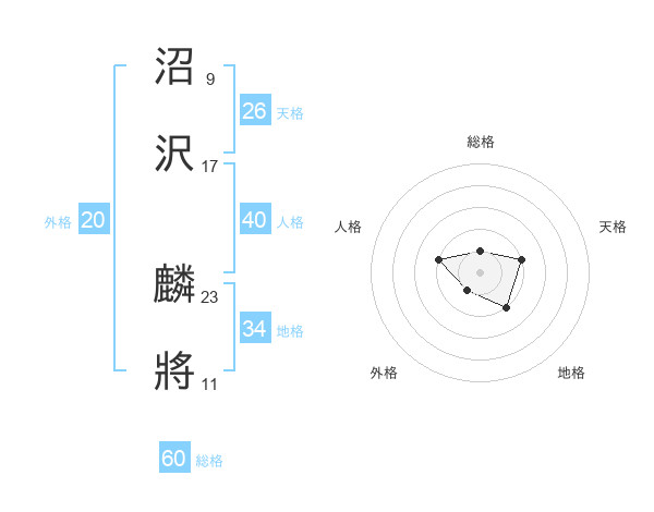 沼沢 麟將さんを姓名の画数から五運を鑑定