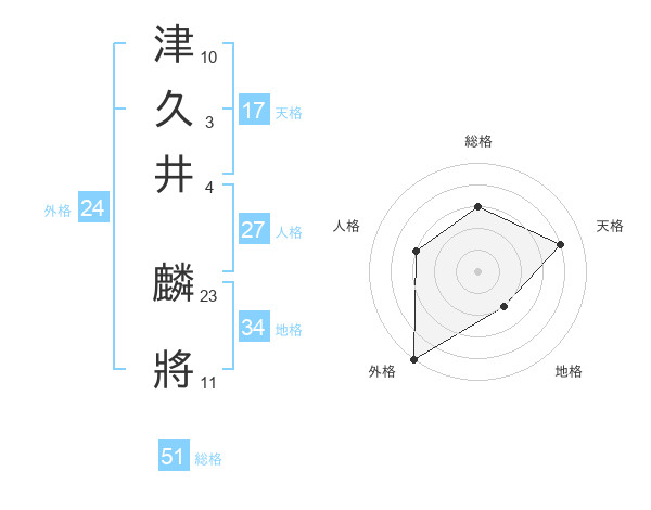 津久井 麟將さんを姓名の画数から五運を鑑定