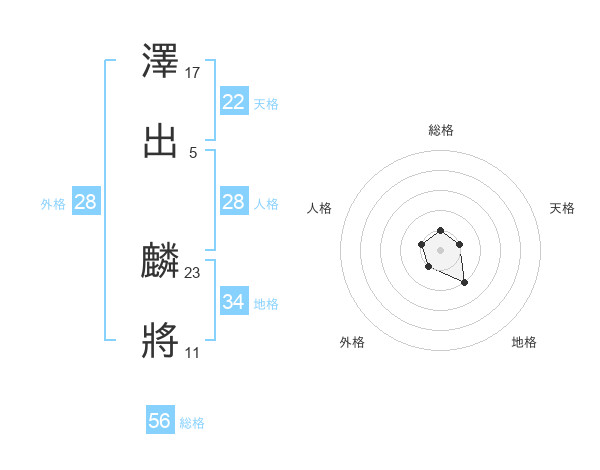 澤出 麟將さんの外格は28画の1点!