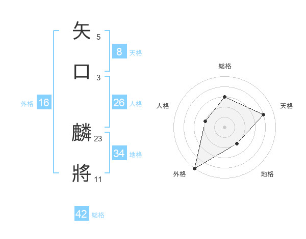 矢口 麟將さんの天格は8画の4点!
