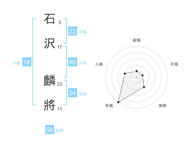 石沢 麟將さんの総格は56画の1点!
