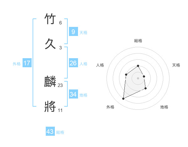 竹久 麟將さんを姓名の画数から五運を鑑定
