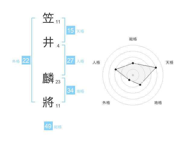 笠井 麟將さんの総格は49画の2点!