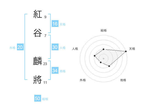 紅谷 麟將さんを姓名の画数から五運を鑑定