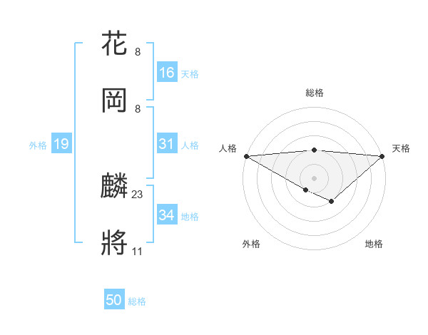 花岡 麟將さんの総格は50画の2点!