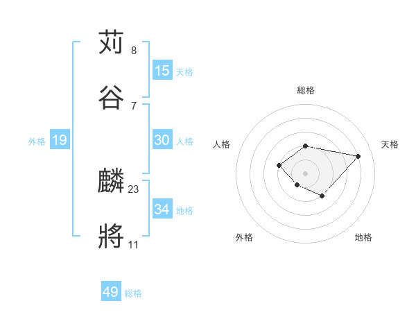 苅谷 麟將さんを姓名の画数から五運を鑑定