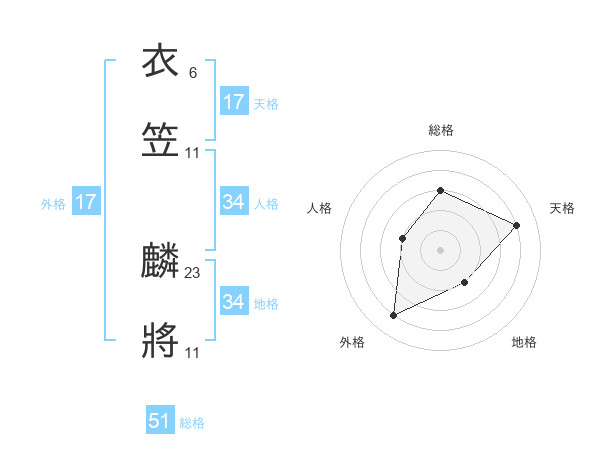 衣笠 麟將さんの総格は51画の3点!
