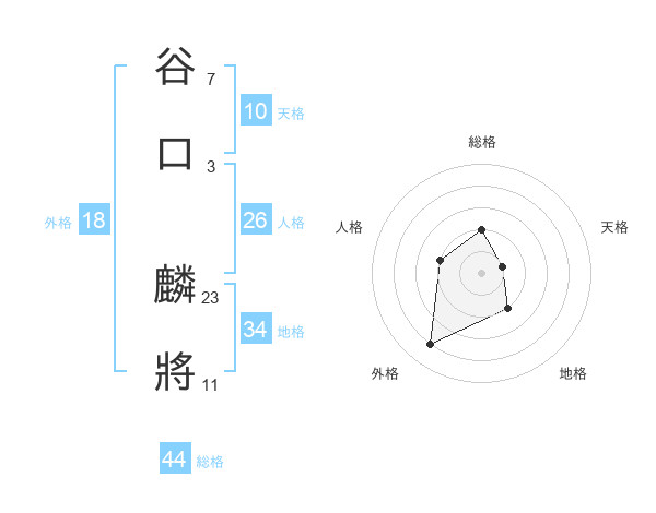 谷口 麟將さんを姓名の画数から五運を鑑定