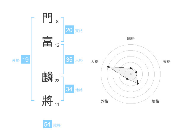 門富 麟將さんの総格は54画の1点!