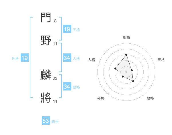 門野 麟將さんの総格は53画の3点!