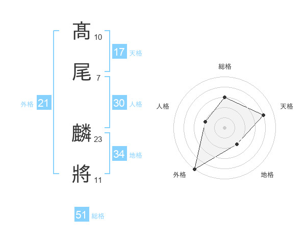 髙尾 麟將さんを姓名の画数から五運を鑑定
