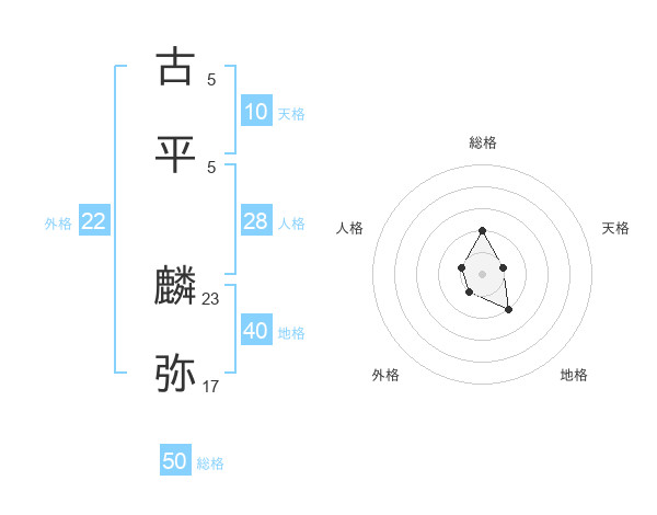 古平 麟弥さんを姓名の画数から五運を鑑定