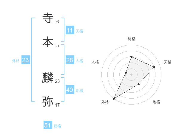 寺本 麟弥さんの総格は51画の3点!