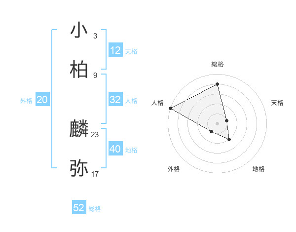 小柏 麟弥さんの天格は12画の1点!