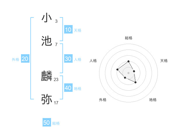 小池 麟弥さんの総格は50画の2点!