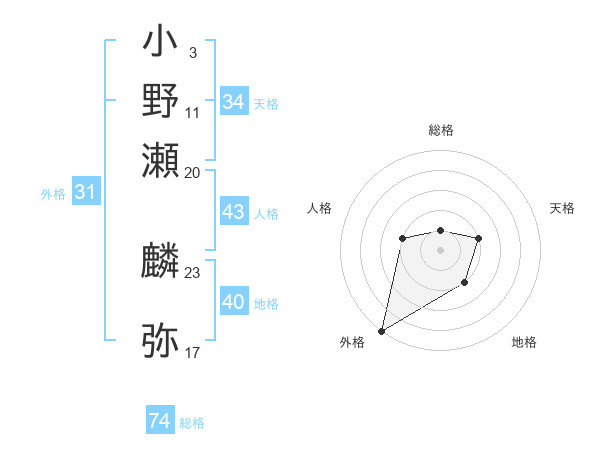 小野瀬 麟弥さんを姓名の画数から五運を鑑定