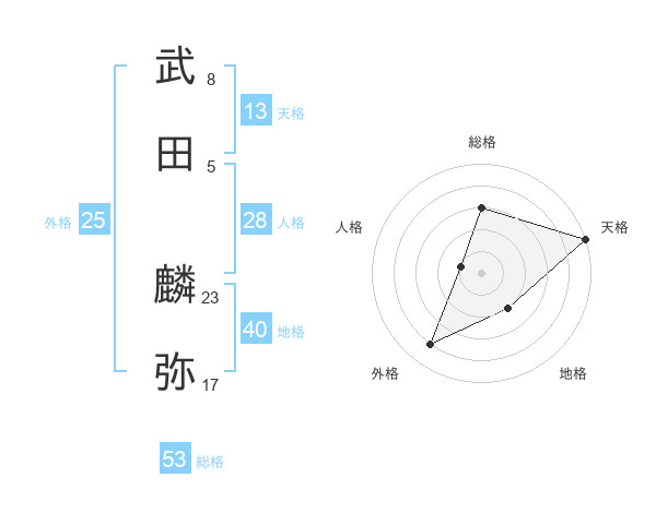 武田 麟弥さんの総格は53画の3点!