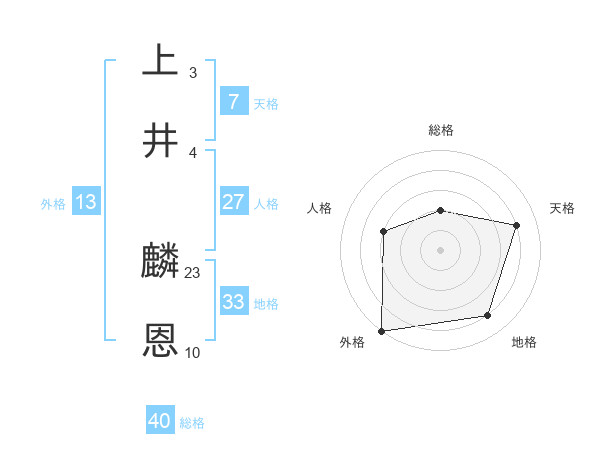 上井 麟恩さんを姓名の画数から五運を鑑定
