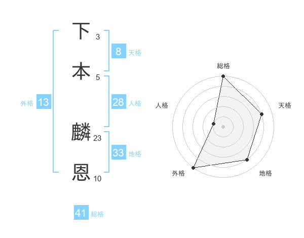 下本 麟恩さんの総格は41画の5点!