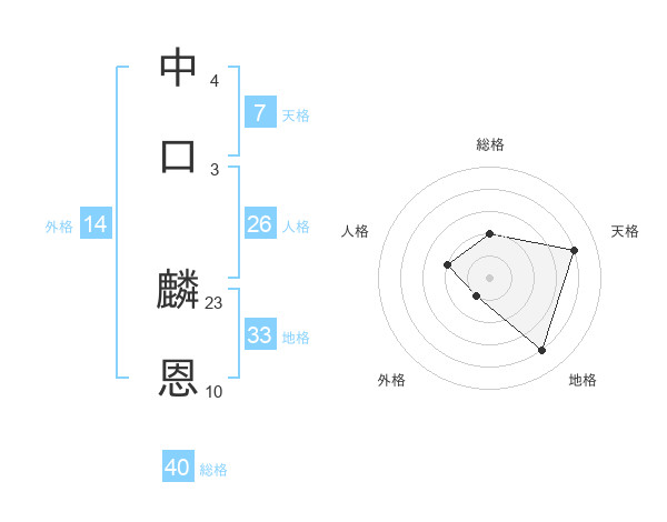 中口 麟恩さんの総格は40画の2点!