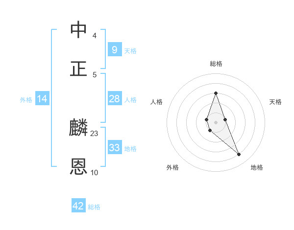中正 麟恩さんを姓名の画数から五運を鑑定