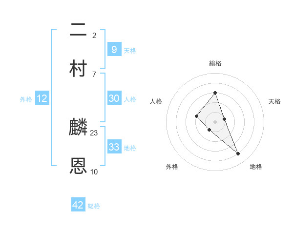 二村 麟恩さんを姓名の画数から五運を鑑定