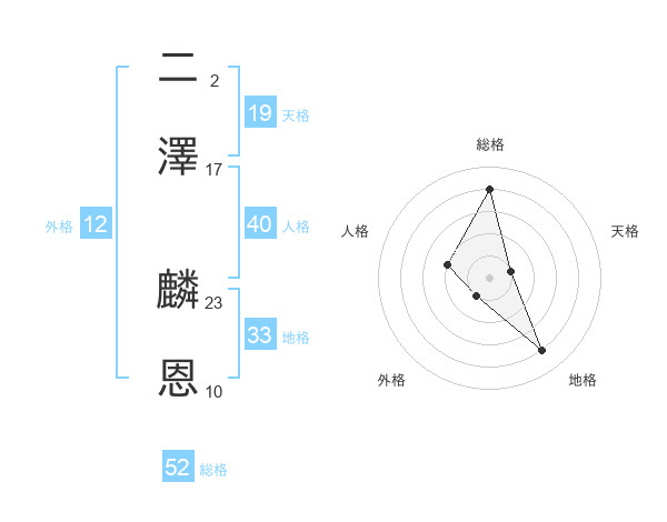 二澤 麟恩さんの総格は52画の4点!