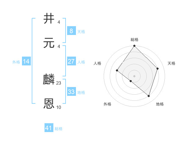井元 麟恩さんの総格は41画の5点!