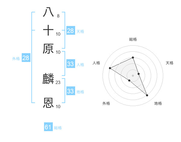 八十原 麟恩さんの総格は61画の3点!