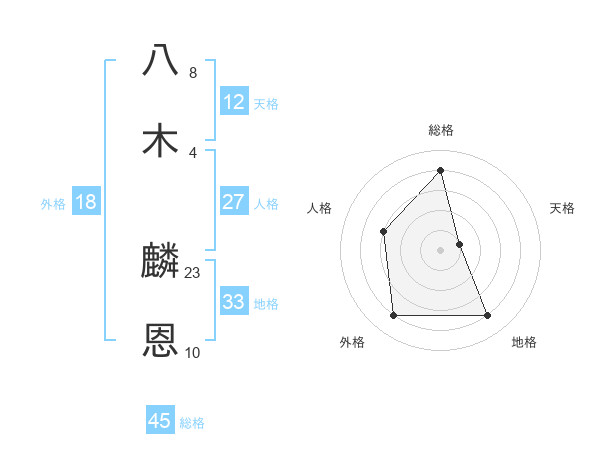 八木 麟恩さんの総格は45画の4点!