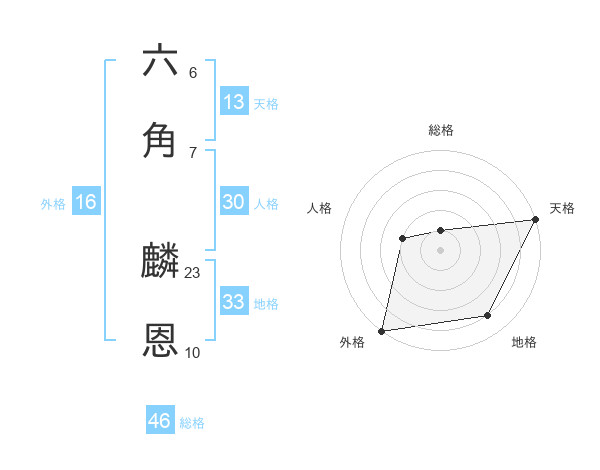 六角 麟恩さんの総格は46画の1点!