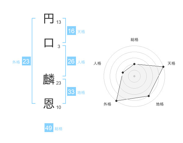 円口 麟恩さんを姓名の画数から五運を鑑定