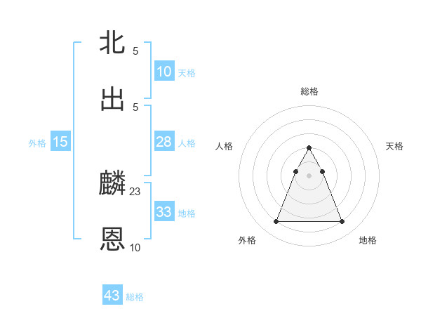 北出 麟恩さんの総格は43画の2点!