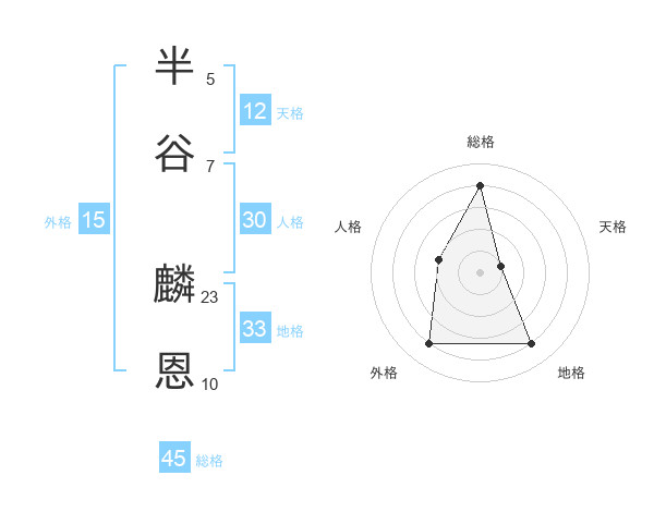 半谷 麟恩さんの総格は45画の4点!