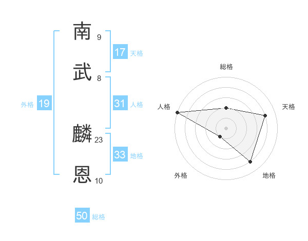 南武 麟恩さんを姓名の画数から五運を鑑定