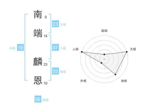 南端 麟恩さんを姓名の画数から五運を鑑定