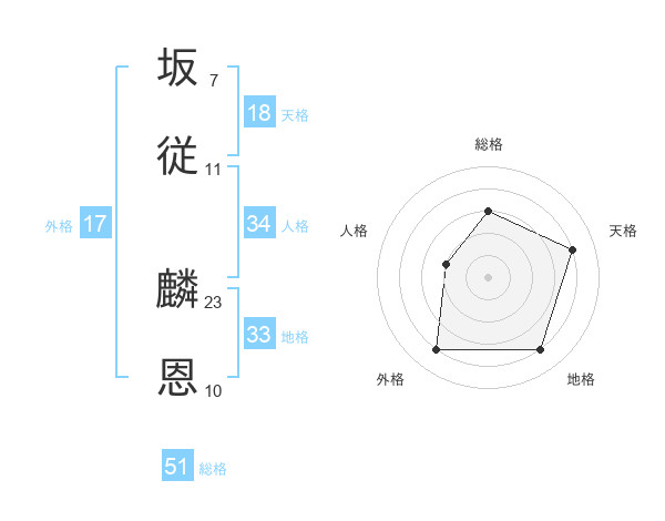 坂従 麟恩さんの総格は51画の3点!