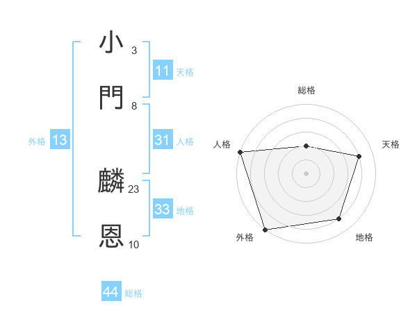 小門 麟恩さんの天格は11画の4点!