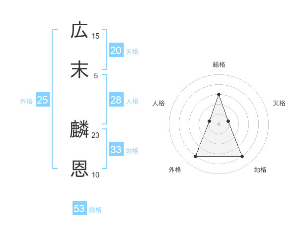 広末 麟恩さんを姓名の画数から五運を鑑定