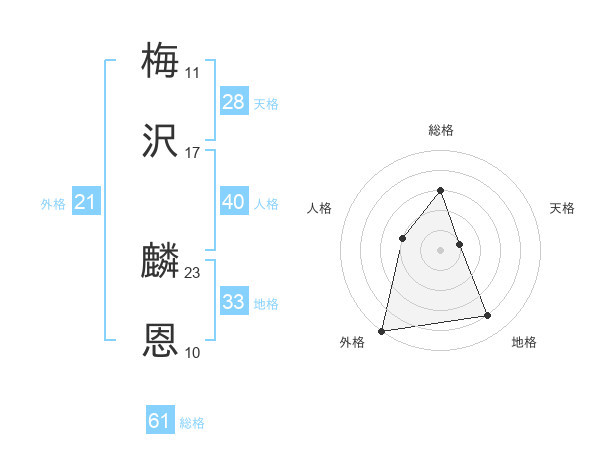 梅沢 麟恩さんの外格は21画の5点!